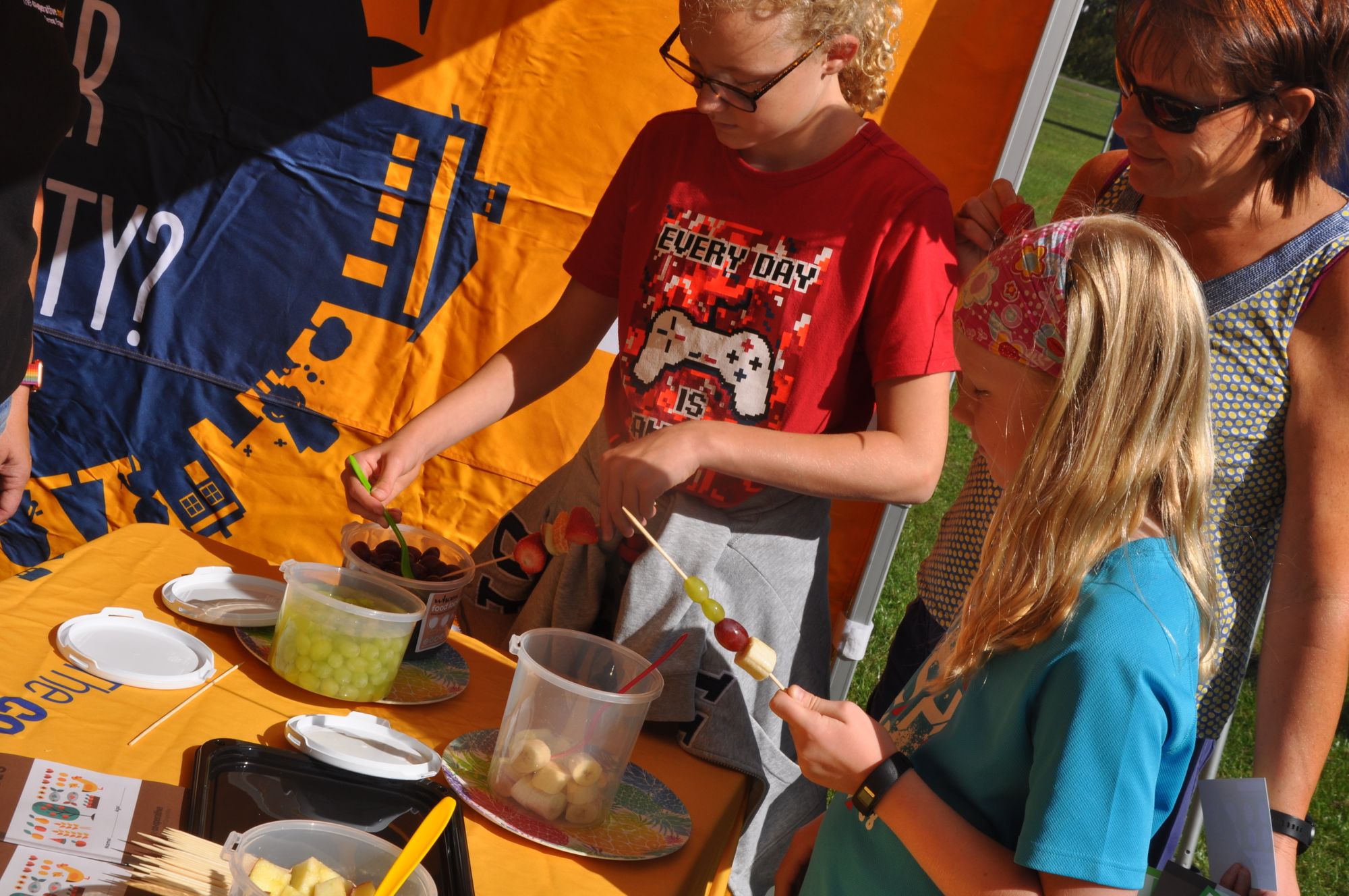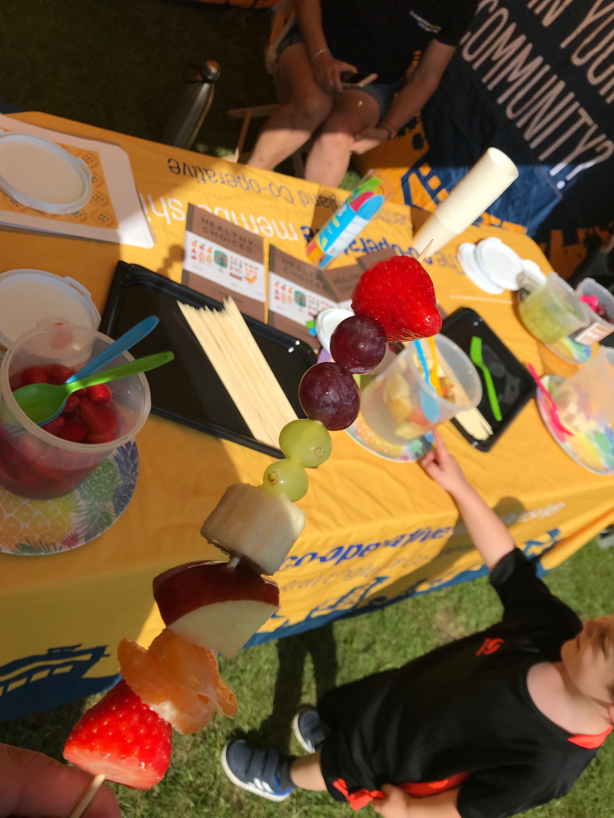 The Western MCC further supported the event by giving young people the opportunity to make their own fruit kebab and receive information on eating healthy. Over 700 fruit kebabs were made and 200 fruit pots created with the fruit on offer of Banana, Apple, Grape, Orange and Strawberry with some wonderful creations being made. Along with the fruit kebabs we spoke to many parents about the work we do in Membership and Community with many parents who have links to schools interested in the workshops we deliver around Healthy Eating, Fairtrade, Democracy and History.