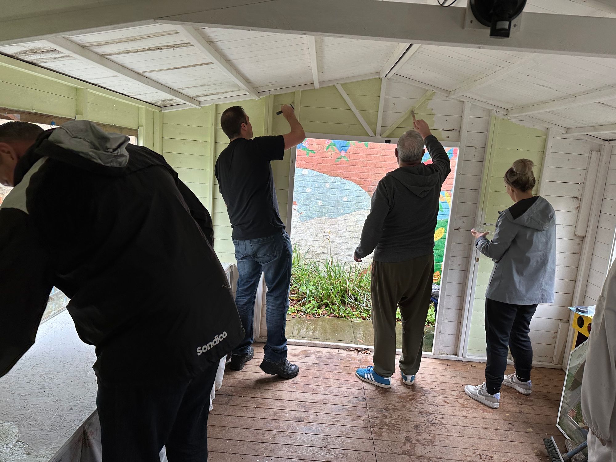 Once the rain had stopped the team tidied and repainted the outside of the Bee Hut to help protect from the elements and also making it look amazing.
