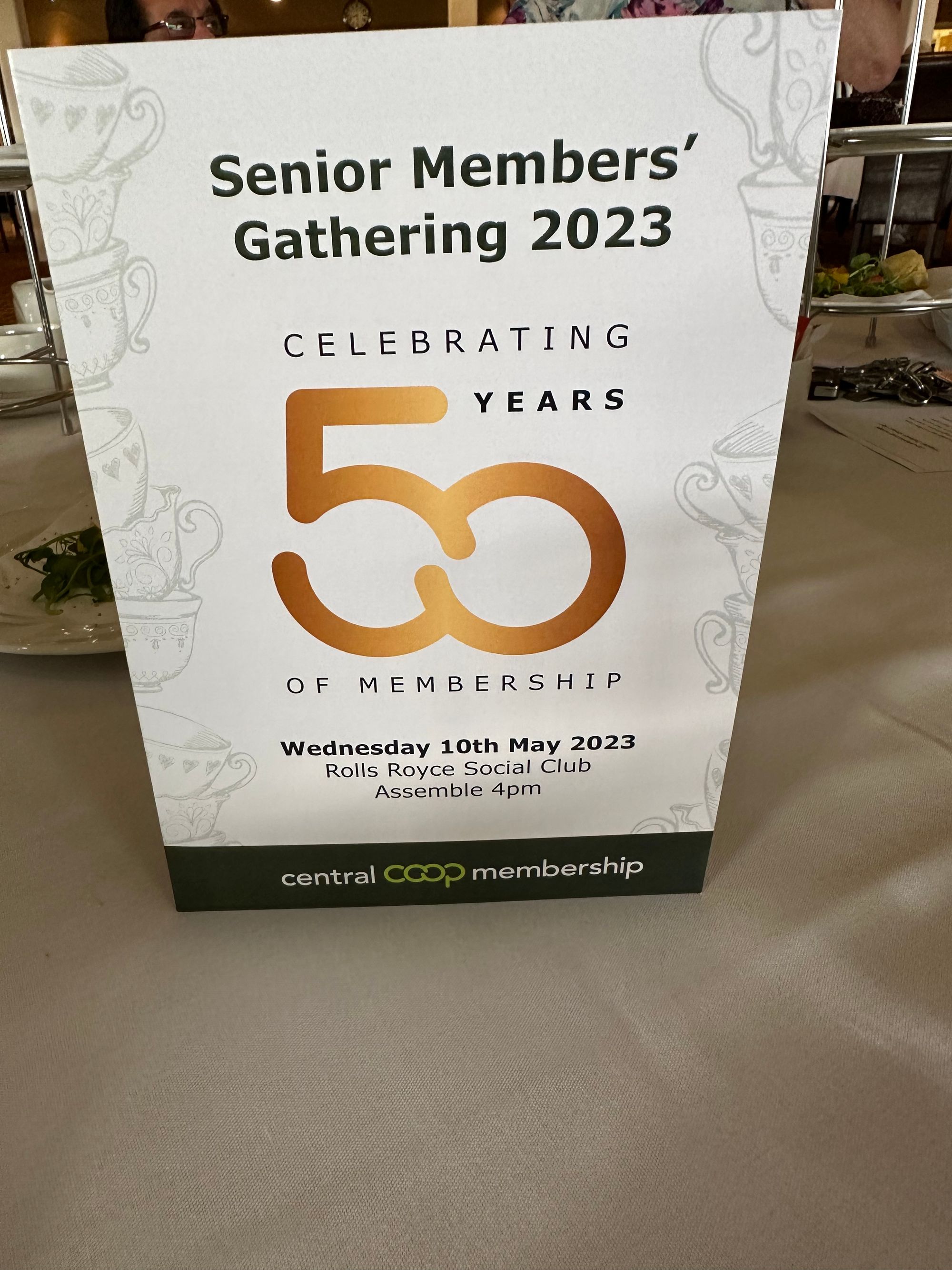 On 10th May 100 Co-op members from the Derby area arrived at the Rolls Royce Club for a special and historic event. This is the annual Senior Members' Gathering which rewards those with 50 or more years of membership with a 'sumptuous repast and concert' and is an event unique to Derby.