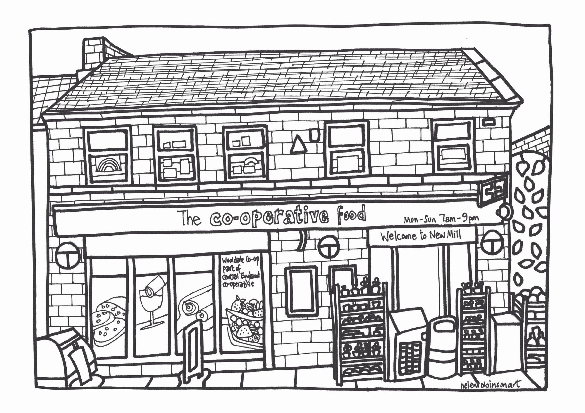 So as they colour in the pictures of the 3 stores, Wooldale, New Mill and Thongsbridge they will also learn about the Co-operative Values and also about Co-operatives around the World. This project was in conjunction with the Wooldale Allotment Association and the pictures were created by Helen Robinson, local artist. So when children visits the stores or the Allotment they can take a free copy home with them.