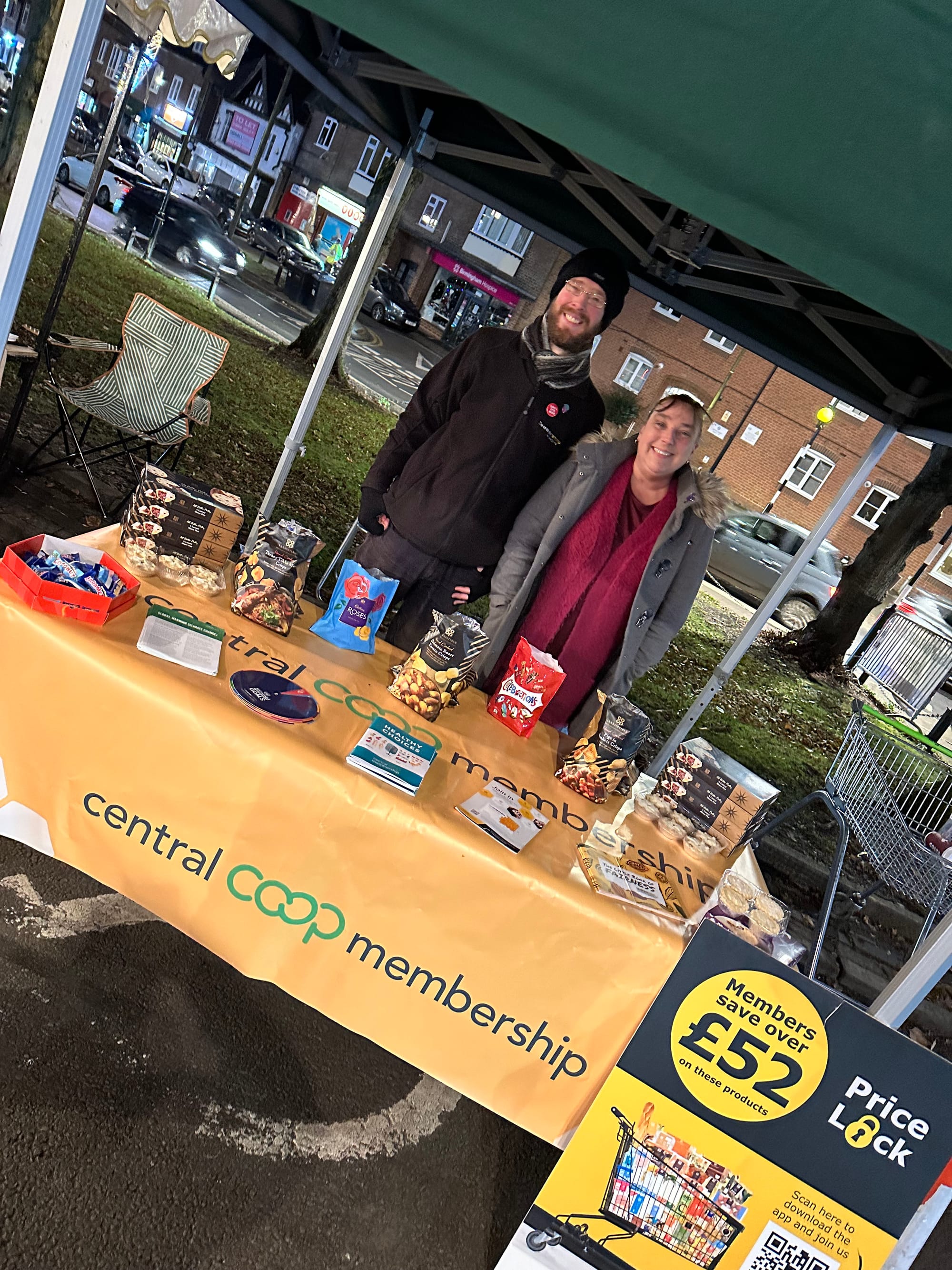 Thursday saw us attend the Christmas Farmers Market at Kings Norton on the coldest night of the year so far! We interacted with the community on membership and community activity, while giving away our award winning luxury mince pies and other Christmas treats.