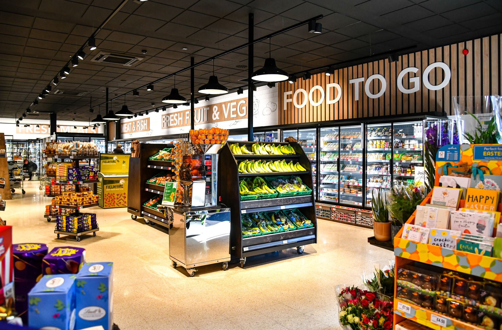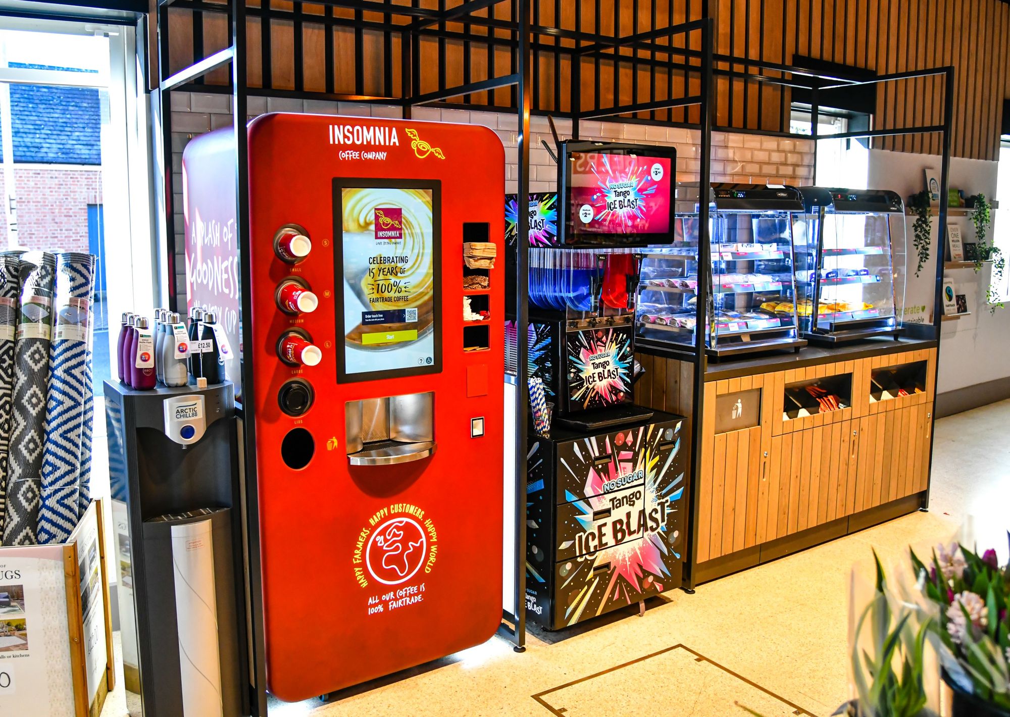 · New self-checkout tills and kiosk, a new food to go section with hot food, Tango Ice Blast, and Insomnia Fairtrade Coffee, an iSqueeze freshly squeezed orange juice machine machine and new customer toilets with baby changing facilities